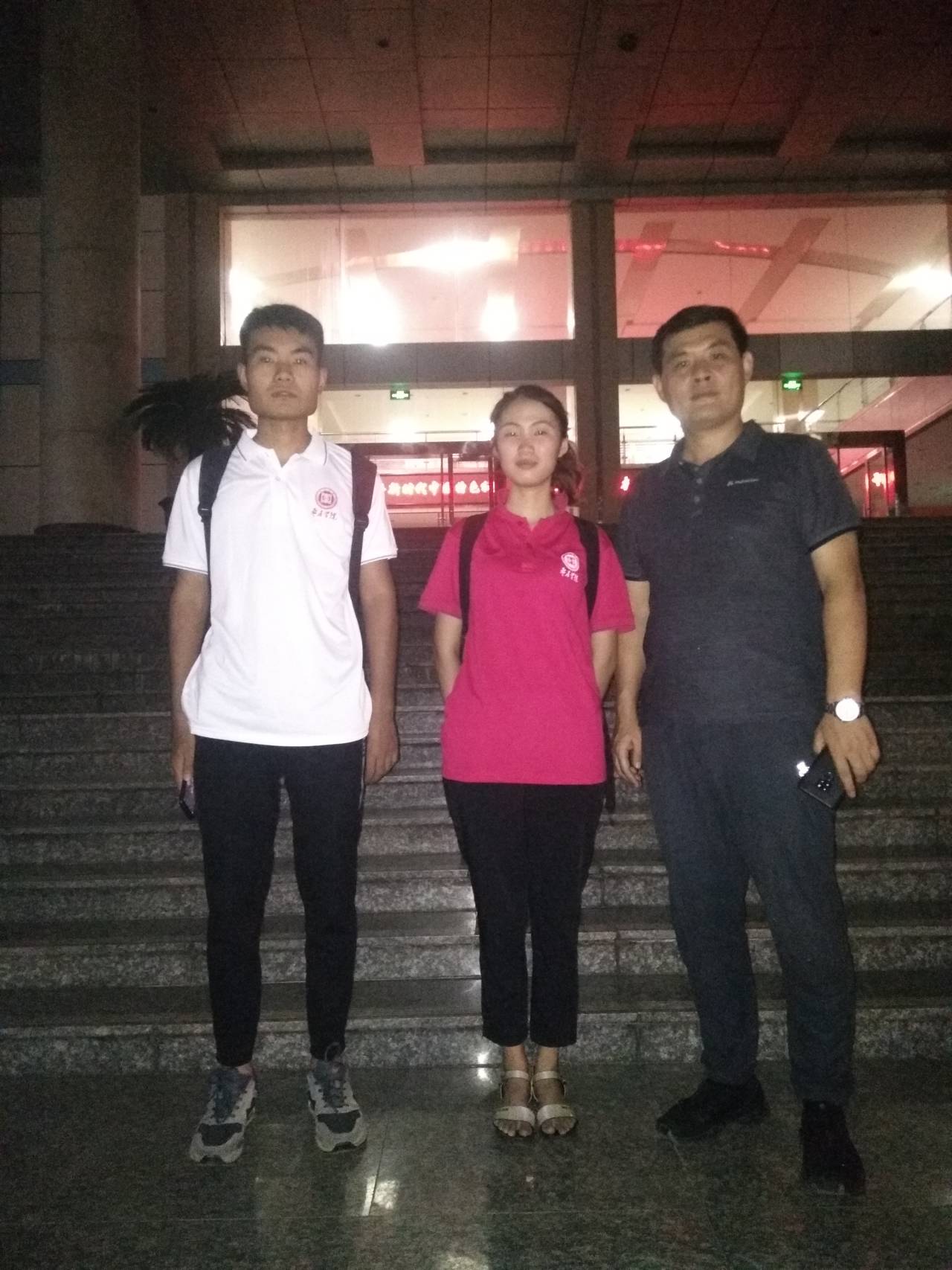 2019年8月31日下午,学校在综合楼一楼学术报告厅举行赴新疆喀什实习支教团出征仪式。晚上10点,我院2017级土木工程专业同学魏子涵、马鹏骁随支教团启程赴疆。我院党总支副书记徐海波老师为两位同学送行,并合影留念。